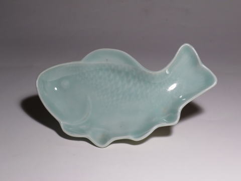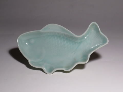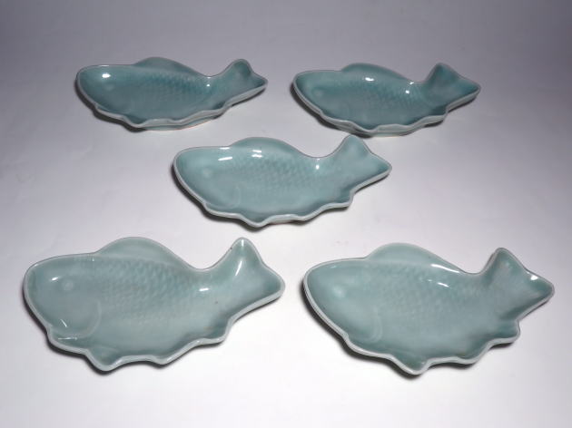 古伊万里 青磁 魚型皿 五客