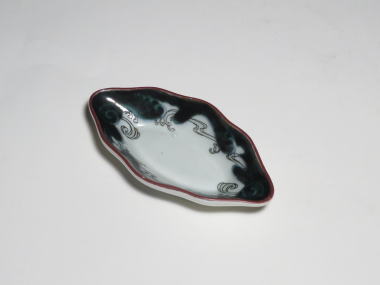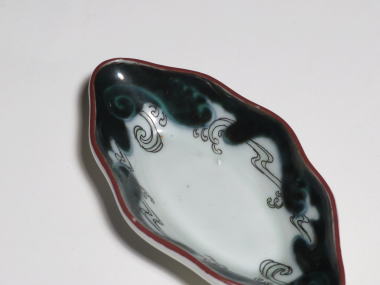 古伊万里 色絵 豆皿 江戸時代 前期 右 9.7cm x 5,1cm 高さ 1,9cm ほぼ無傷と言える状態ですか、1mm以下の紅アタリがあります 左 9,2cm x 5,0cm 高さ 2,0cm 無傷